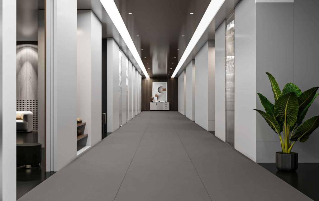 Le Arta Gris 80×80 Poli Rectifié séduit par son éclat subtil et sa teinte moderne, idéal pour des espaces élégants et contemporains.